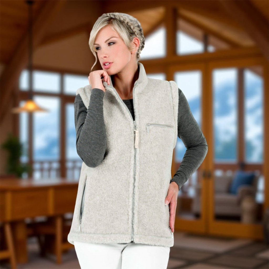 Vlněná dámská vesta v elegantním sportovním provedení. Tato sportovní vesta je vhodná jak k vrstvení oblečení, tak i pro chvíle odpočinku. Zapínání i kapsy jsou opatřeny kvalitním zipem, včetně náprsní kapsy. Šitá ke krku se stojáček. Vesta z ovčího rouna (merino) je požehnáním pro vaše zdraví. Suché teplo léčí a účinně zabraňuje zhoršení zdravotního stavu způsobeného prochladnutím krku, zad a břicha. Barevné provedení světle šedá. 100% ovčí vlna. Zapínání na zip